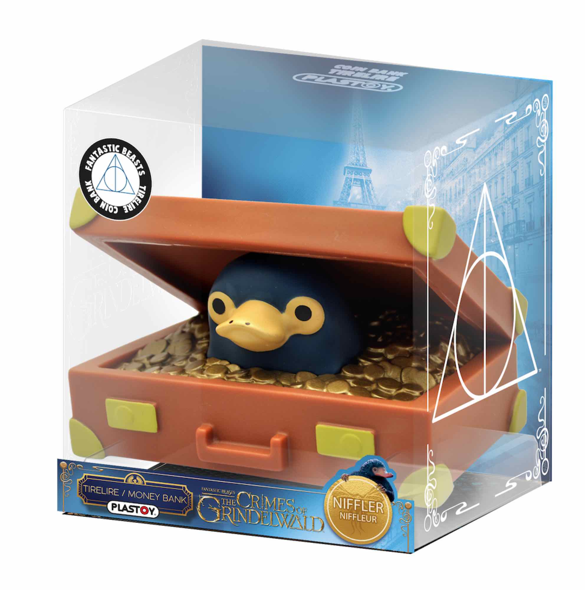 Plastoy presenta esta vistosa hucha de Niffler dentro de una maleta, en su graciosa versión Chibi, basada en el personaje de la saga de películas de Animales Fantásticos.
