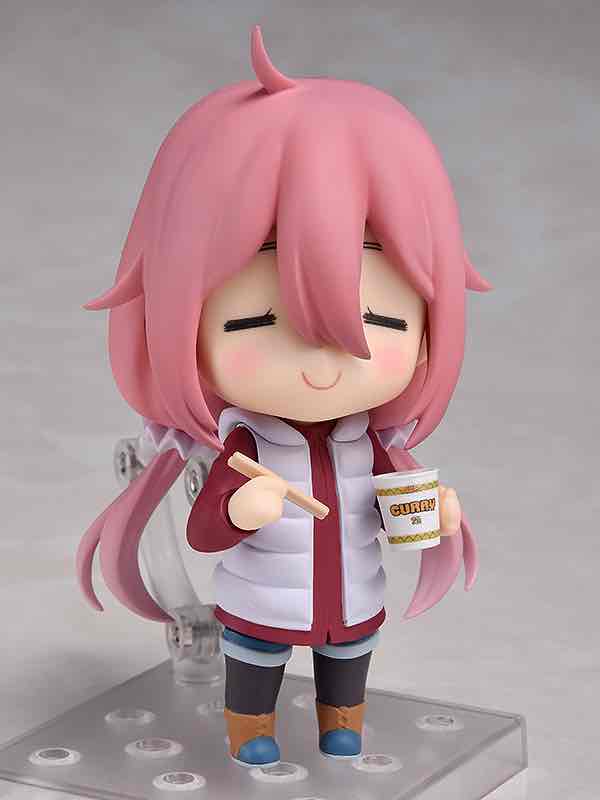 Good Smile Company presenta esta figura Nendoroid del personaje Nadeshiko Kagamihara del anime “Laid-Back Camp”. La figura está hecha en PVC, mide aproximadamente 10 cm e incluye base soporte. Viene con 3x expresiones faciales, una parte de la bufanda desmontable, así como una parte alternativa de la cabeza sin el sombrero. Además, incluye fideos de curry, una olla caliente, una estufa de gas, un tazón, palillos chinos, una cuchara sopera y un cucharón. Viene también con una placa de texto de redes sociales para recrear las líneas de tiempo icónicas de la serie y una silla de campaña de papel para mostrar a su lado.